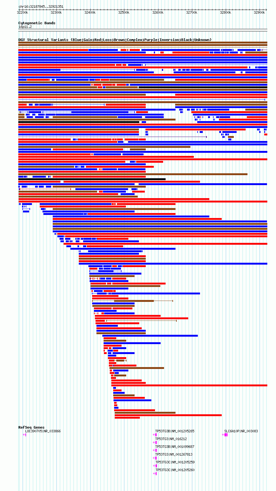 Variant DetailsVariant: nsv1064866| Internal ID | 19154085 | | Landmark | | | Location Information | | | Cytoband | 16p11.2 | | Allele length | | Assembly | Allele length | | hg38 | 733507 | | hg19 | 733507 | | hg18 | 733507 |