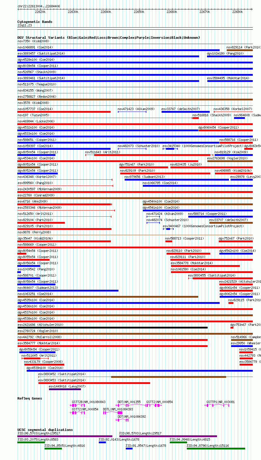 Variant DetailsVariant: nsv1065133| Internal ID | 18807664 | | Landmark | | | Location Information | | | Cytoband | 22q11.23 | | Allele length | | Assembly | Allele length | | hg38 | 60266 | | hg19 | 71403 | | hg18 | 71403 |