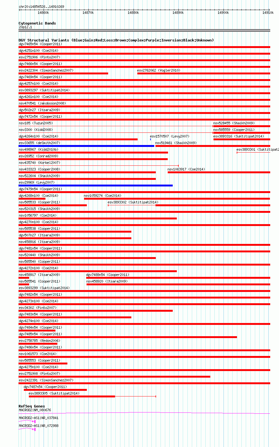 Variant DetailsVariant: nsv1065202| Internal ID | 19154421 | | Landmark | | | Location Information | | | Cytoband | 20p12.1 | | Allele length | | Assembly | Allele length | | hg38 | 55744 | | hg19 | 55744 | | hg18 | 55744 |