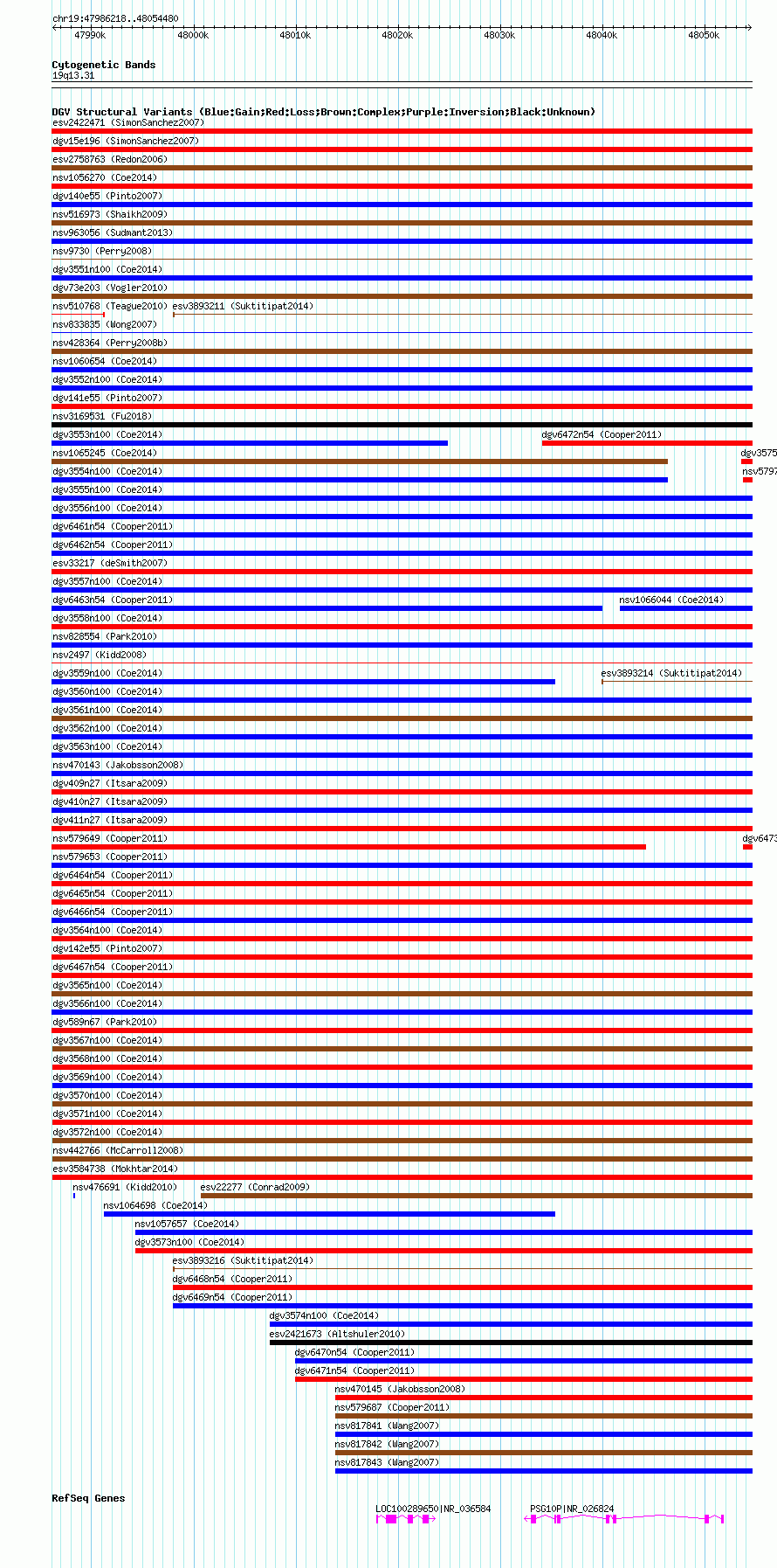 Variant DetailsVariant: nsv1065263| Internal ID | 19154482 | | Landmark | | | Location Information | | | Cytoband | 19q13.2 | | Allele length | | Assembly | Allele length | | hg38 | 68263 | | hg19 | 68263 | | hg18 | 68263 |