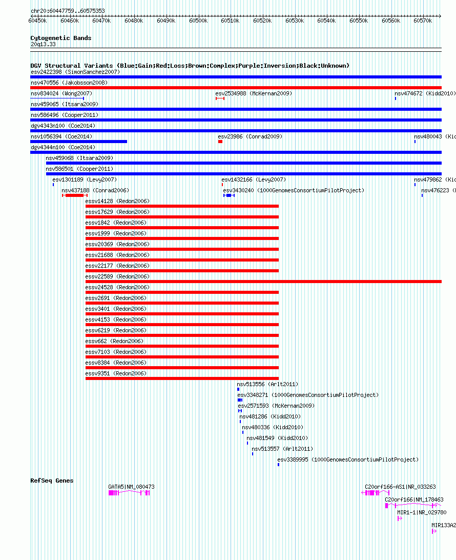 Variant DetailsVariant: nsv1065320| Internal ID | 19154539 | | Landmark | | | Location Information | | | Cytoband | 20q13.33 | | Allele length | | Assembly | Allele length | | hg38 | 128394 | | hg19 | 150545 | | hg18 | 127595 |