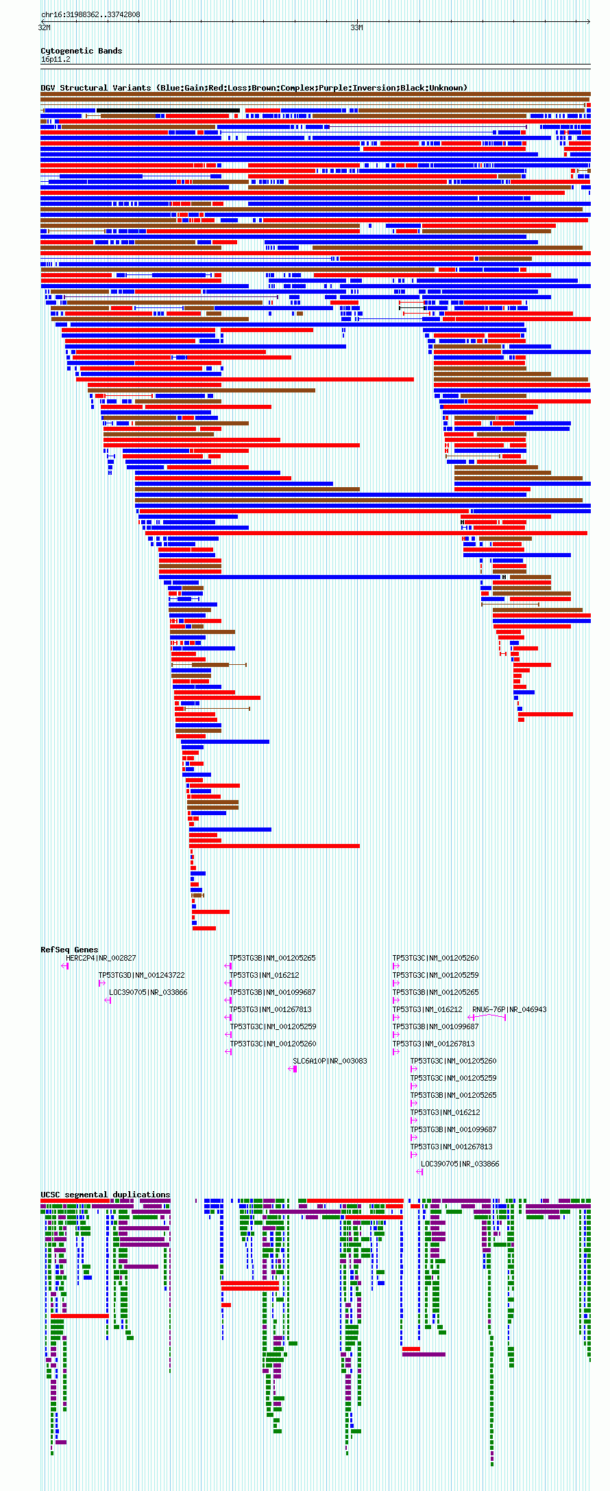 | | Variant Type | CNV gain | | Copy Number | | | Allele State | | | Allele Origin | | | Probe Count | | | Validation Flag | | | Merged Status | M | | Merged Variants | dgv2840n100 | | Supporting Variants | nssv3549376 | | Samples | | | Known Genes | HERC2P4, LOC390705, RNU6-76P, SLC6A10P, TP53TG3, TP53TG3B, TP53TG3C, TP53TG3D | | Method | SNP array | | Analysis | Affymetrix SNP array copy number analysis | | Platform | Affymetrix SNP Array 6.0 | | Comments | | | Reference | Coe_et_al_2014 | | Pubmed ID | 25217958 | | Accession Number(s) | nsv1065820