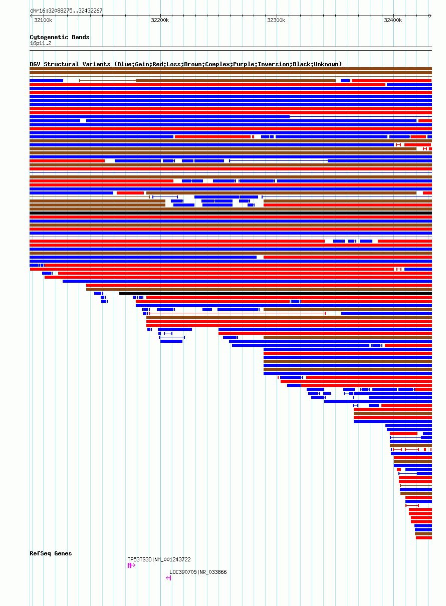 Variant DetailsVariant: nsv1065897| Internal ID | 19155116 | | Landmark | | | Location Information | | | Cytoband | 16p11.2 | | Allele length | | Assembly | Allele length | | hg38 | 343993 | | hg19 | 343993 | | hg18 | 343993 |