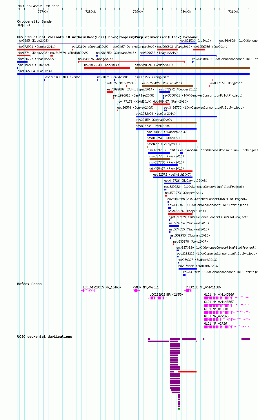 | Variant Type | CNV gain | Copy Number | | Allele State | | Allele Origin | | Probe Count | | Validation Flag | | Merged Status | M | Merged Variants | | Supporting Variants | nssv3559575 | Samples | | Known Genes | CLEC18B, GLG1, LOC101928035, LOC283922, PSMD7 | Method | SNP array | Analysis | Affymetrix SNP array copy number analysis | Platform | Affymetrix SNP Array 6.0 | Comments | | Reference | Coe_et_al_2014 | Pubmed ID | 25217958 | Accession Number(s) | nsv1065964