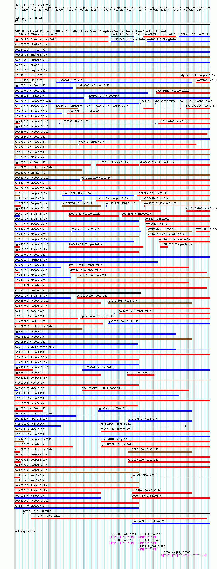 Variant DetailsVariant: nsv1065978| Internal ID | 19155197 | | Landmark | | | Location Information | | | Cytoband | 19q13.31 | | Allele length | | Assembly | Allele length | | hg38 | 166787 | | hg19 | 166787 | | hg18 | 166787 |