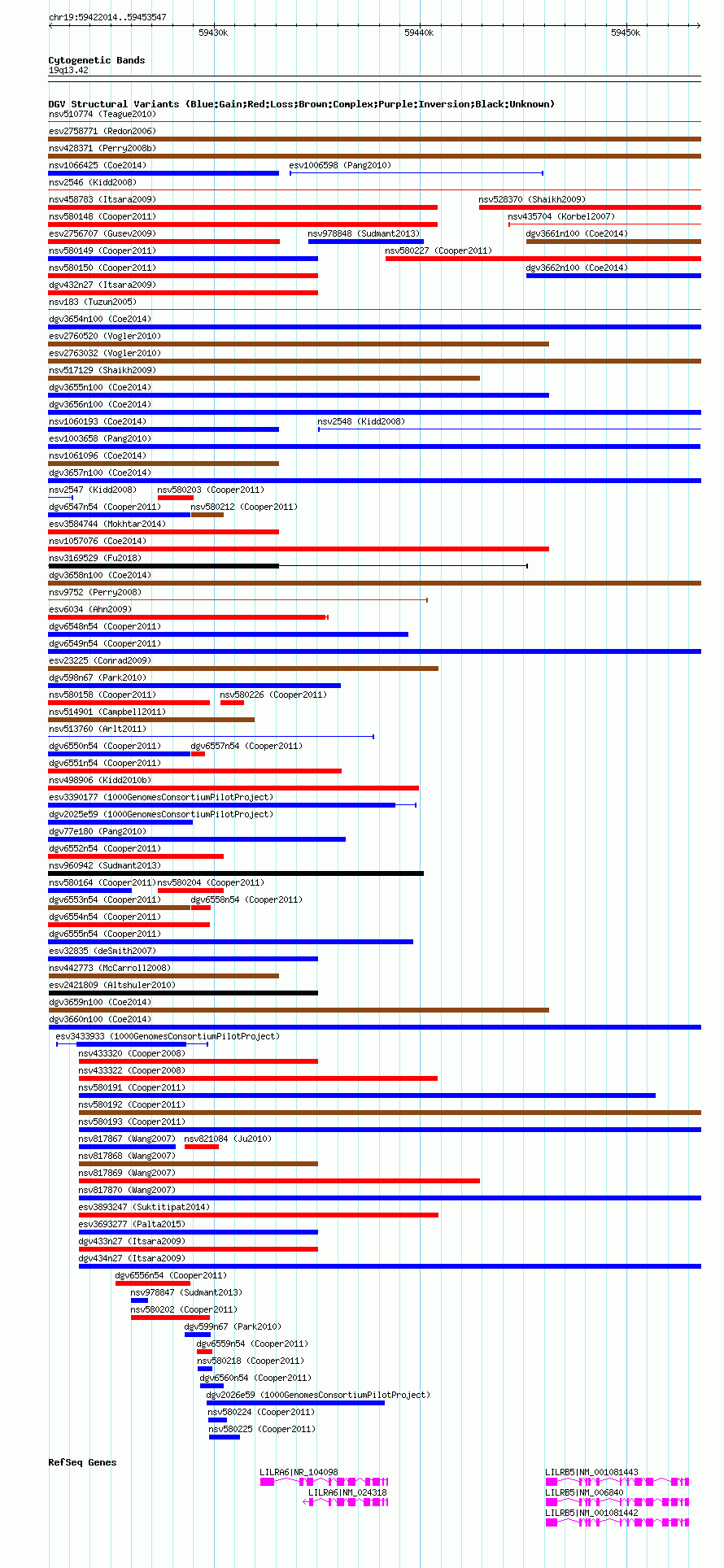 Variant DetailsVariant: nsv1066188| Internal ID | 19155407 | | Landmark | | | Location Information | | | Cytoband | 19q13.42 | | Allele length | | Assembly | Allele length | | hg38 | 31544 | | hg19 | 31534 | | hg18 | 31534 |