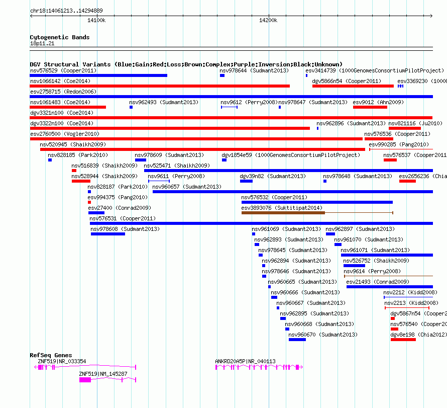 Variant DetailsVariant: nsv1066363| Internal ID | 19155582 | | Landmark | | | Location Information | | | Cytoband | 18p11.21 | | Allele length | | Assembly | Allele length | | hg38 | 233677 | | hg19 | 233677 | | hg18 | 233677 |