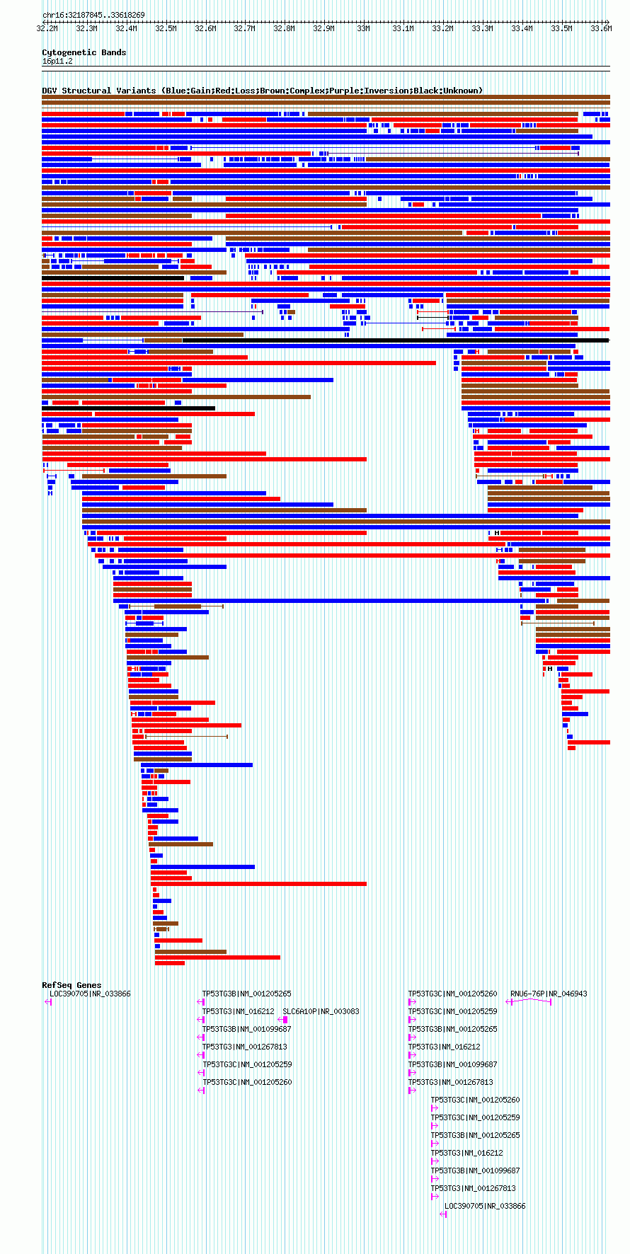 Variant DetailsVariant: nsv1066896| Internal ID | 19156115 | | Landmark | | | Location Information | | | Cytoband | 16p11.2 | | Allele length | | Assembly | Allele length | | hg38 | 1639279 | | hg19 | 1430425 | | hg18 | 1430425 |