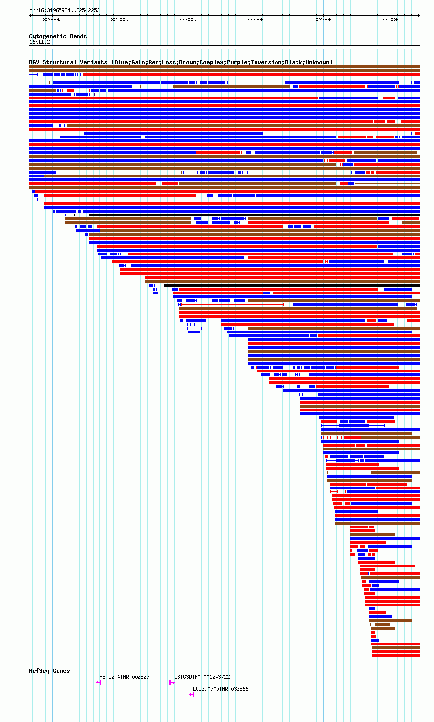 Variant DetailsVariant: nsv1067196| Internal ID | 19156415 | | Landmark | | | Location Information | | | Cytoband | 16p11.2 | | Allele length | | Assembly | Allele length | | hg38 | 576270 | | hg19 | 576270 | | hg18 | 576270 |