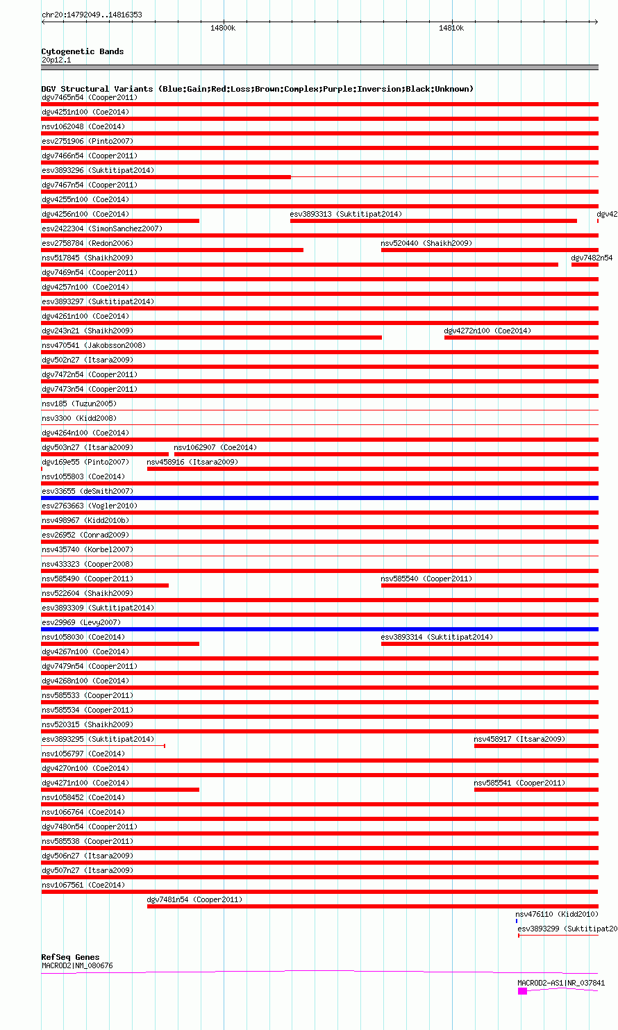Variant DetailsVariant: nsv1067561| Internal ID | 19156780 | | Landmark | | | Location Information | | | Cytoband | 20p12.1 | | Allele length | | Assembly | Allele length | | hg38 | 24305 | | hg19 | 24305 | | hg18 | 24305 |