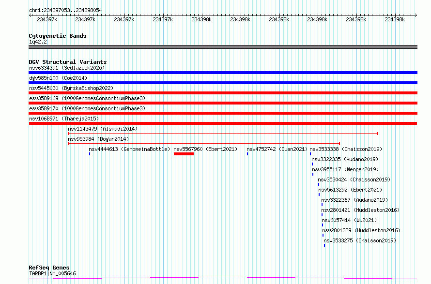 Variant DetailsVariant: nsv1068971| Internal ID | 19319668 | | Landmark | | | Location Information | | | Cytoband | 1q42.2 | | Allele length | | Assembly | Allele length | | hg38 | 1002 | | hg19 | 1002 |