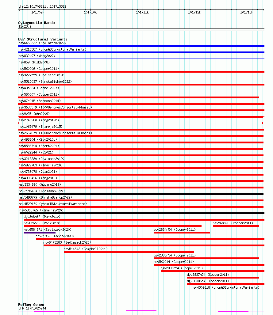 Variant DetailsVariant: nsv1069479| Internal ID | 19324430 | | Landmark | | | Location Information | | | Cytoband | 12q23.2 | | Allele length | | Assembly | Allele length | | hg38 | 4702 | | hg19 | 4702 |