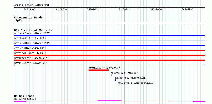 Variant DetailsVariant: nsv1070020| Internal ID | 19326784 | | Landmark | | | Location Information | | | Cytoband | 11p13 | | Allele length | | Assembly | Allele length | | hg38 | 602 | | hg19 | 602 |