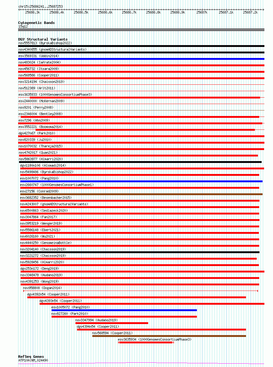 Variant DetailsVariant: nsv1070032| Internal ID | 19318178 | | Landmark | | | Location Information | | | Cytoband | 15q12 | | Allele length | | Assembly | Allele length | | hg38 | 1013 | | hg19 | 1013 |