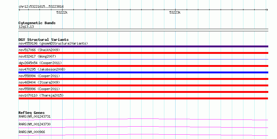 Variant DetailsVariant: nsv1070110| Internal ID | 19326657 | | Landmark | | | Location Information | | | Cytoband | 12q13.13 | | Allele length | | Assembly | Allele length | | hg38 | 2202 | | hg19 | 2202 |