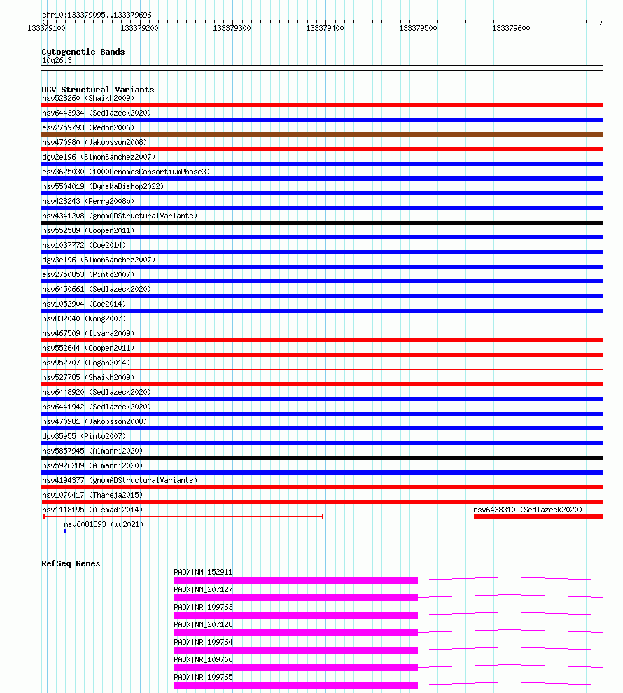 Variant DetailsVariant: nsv1070417| Internal ID | 19323586 | | Landmark | | | Location Information | | | Cytoband | 10q26.3 | | Allele length | | Assembly | Allele length | | hg38 | 602 | | hg19 | 602 |