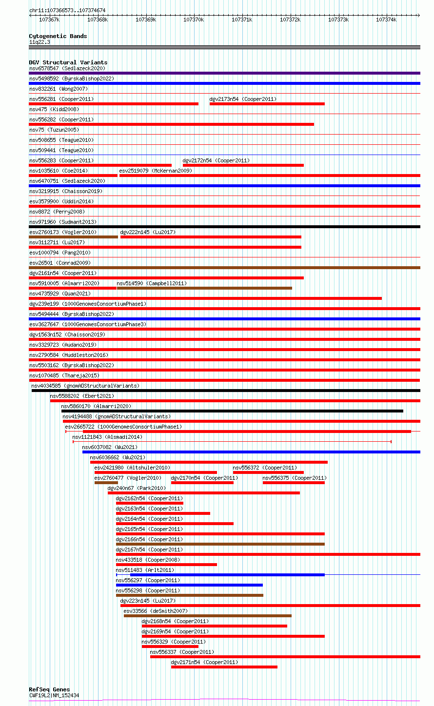 Variant DetailsVariant: nsv1070485| Internal ID | 19322480 | | Landmark | | | Location Information | | | Cytoband | 11q22.3 | | Allele length | | Assembly | Allele length | | hg38 | 8102 | | hg19 | 8102 |