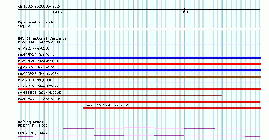 Variant DetailsVariant: nsv1070778| Internal ID | 19326794 | | Landmark | | | Location Information | | | Cytoband | 16q24.1 | | Allele length | | Assembly | Allele length | | hg38 | 1902 | | hg19 | 1902 |