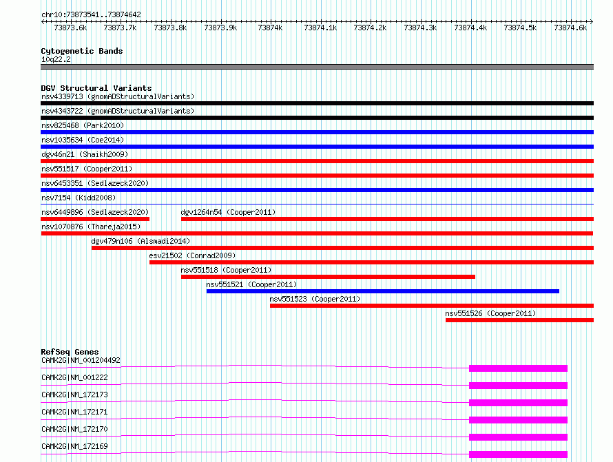 Variant DetailsVariant: nsv1070876| Internal ID | 19326035 | | Landmark | | | Location Information | | | Cytoband | 10q22.2 | | Allele length | | Assembly | Allele length | | hg38 | 1102 | | hg19 | 1102 |