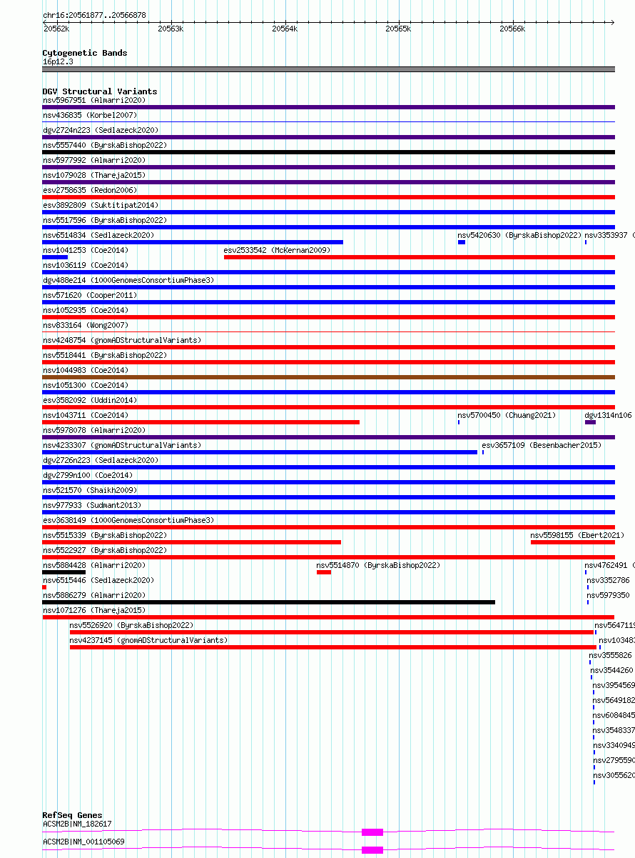 Variant DetailsVariant: nsv1071276| Internal ID | 19316595 | | Landmark | | | Location Information | | | Cytoband | 16p12.3 | | Allele length | | Assembly | Allele length | | hg38 | 5002 | | hg19 | 5002 |