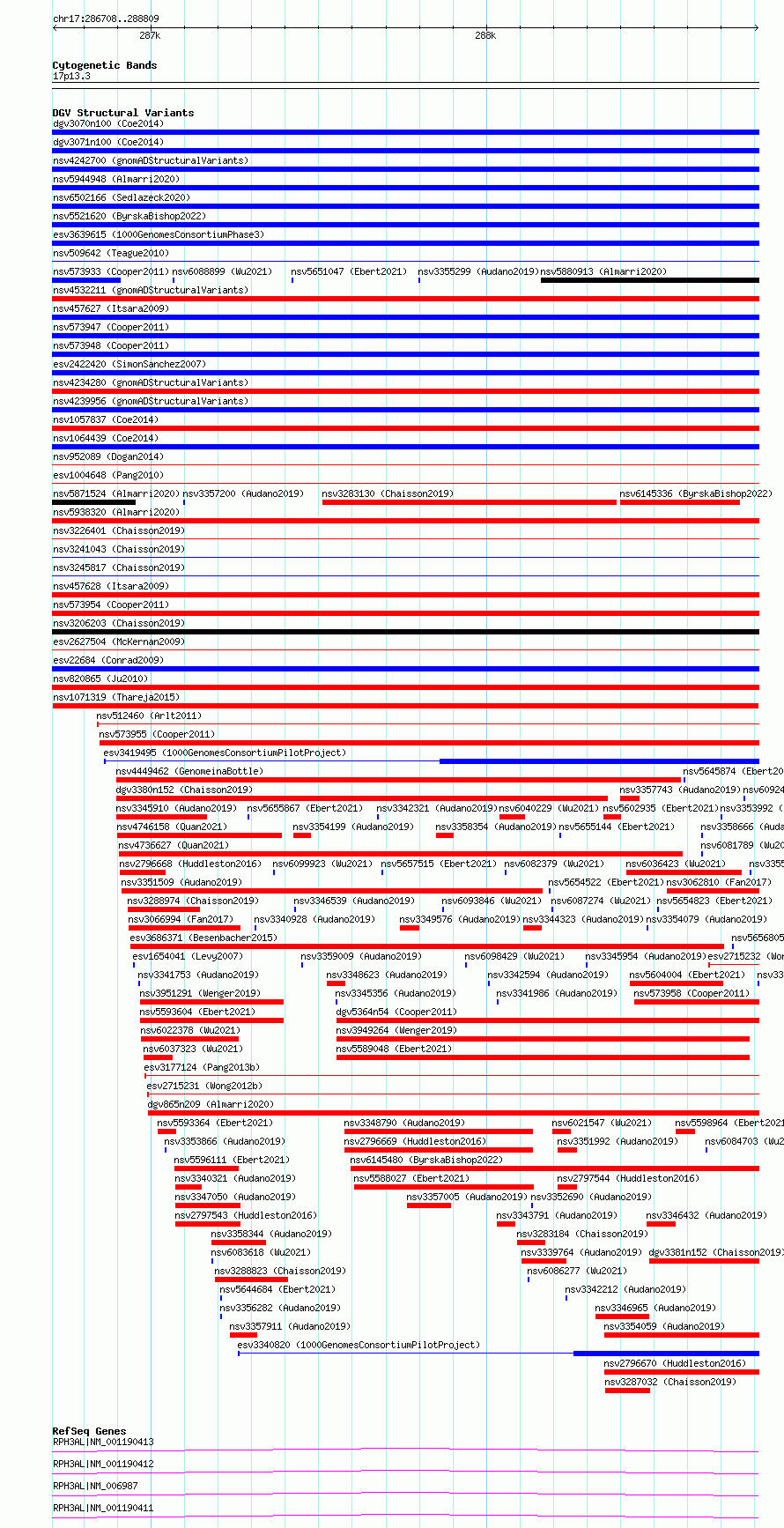 Variant DetailsVariant: nsv1071319| Internal ID | 19324999 | | Landmark | | | Location Information | | | Cytoband | 17p13.3 | | Allele length | | Assembly | Allele length | | hg38 | 2102 | | hg19 | 2102 |