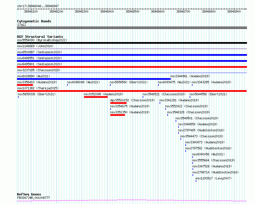 Variant DetailsVariant: nsv1071382| Internal ID | 19318528 | | Landmark | | | Location Information | | | Cytoband | 17q12 | | Allele length | | Assembly | Allele length | | hg38 | 902 | | hg19 | 902 |