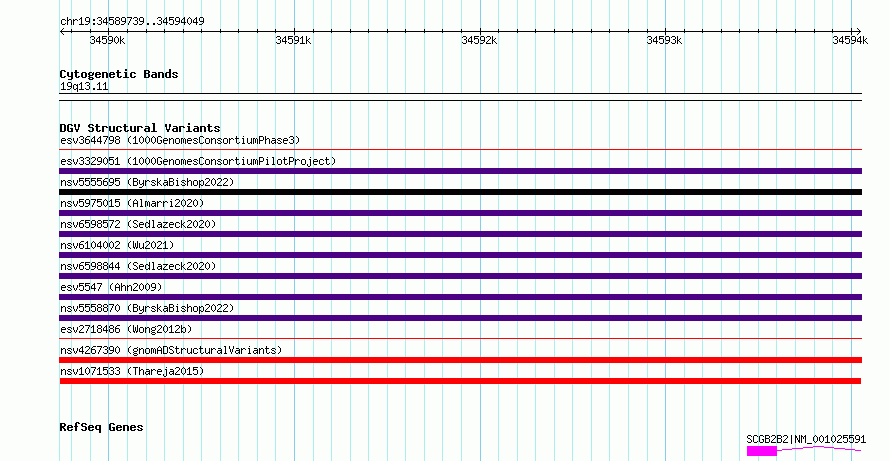 | | Variant Type | CNV deletion | | Copy Number | | | Allele State | | | Allele Origin | | | Probe Count | | | Validation Flag | | | Merged Status | M | | Merged Variants | | | Supporting Variants | nssv3766409 | | Samples | KWP1 | | Known Genes | SCGB2B2 | | Method | Sequencing | | Analysis | HugeSeq | | Platform | Illumina HiSeq 2000 | | Comments | | | Reference | Thareja_et_al_2015 | | Pubmed ID | 25765185 | | Accession Number(s) | nsv1071533