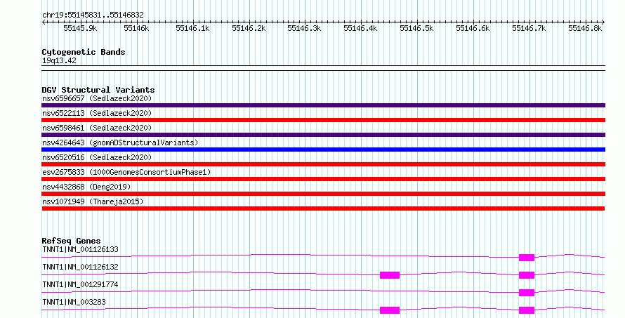 | | Variant Type | CNV deletion | | Copy Number | | | Allele State | | | Allele Origin | | | Probe Count | | | Validation Flag | | | Merged Status | M | | Merged Variants | | | Supporting Variants | nssv3763137 | | Samples | KWP1 | | Known Genes | TNNT1 | | Method | Sequencing | | Analysis | HugeSeq | | Platform | Illumina HiSeq 2000 | | Comments | | | Reference | Thareja_et_al_2015 | | Pubmed ID | 25765185 | | Accession Number(s) | nsv1071949