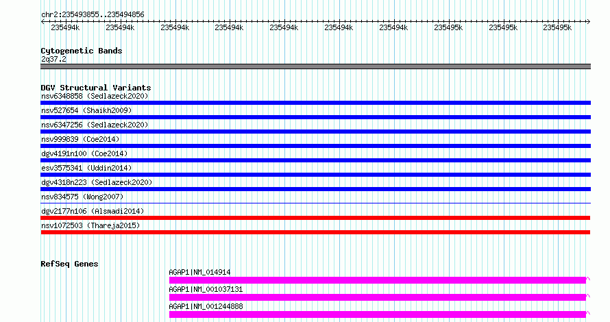 Variant DetailsVariant: nsv1072503| Internal ID | 19322946 | | Landmark | | | Location Information | | | Cytoband | 2q37.2 | | Allele length | | Assembly | Allele length | | hg38 | 1002 | | hg19 | 1002 |