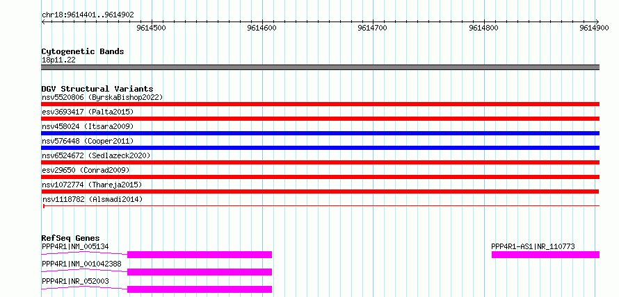 Variant DetailsVariant: nsv1072774| Internal ID | 19323189 | | Landmark | | | Location Information | | | Cytoband | 18p11.22 | | Allele length | | Assembly | Allele length | | hg38 | 502 | | hg19 | 502 |