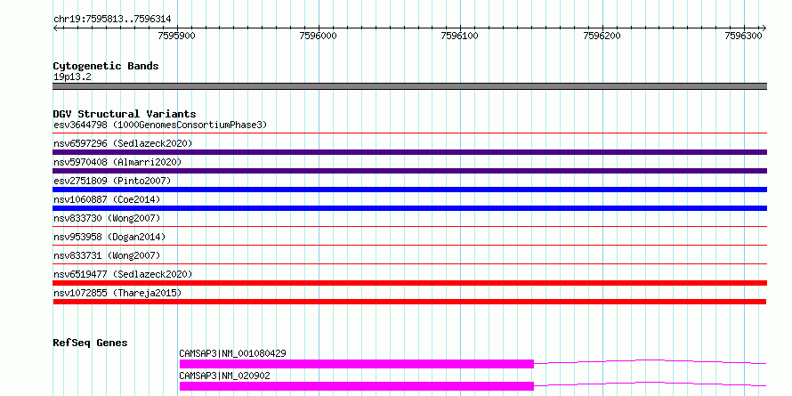 Variant DetailsVariant: nsv1072855| Internal ID | 19318111 | | Landmark | | | Location Information | | | Cytoband | 19p13.2 | | Allele length | | Assembly | Allele length | | hg38 | 502 | | hg19 | 502 |
