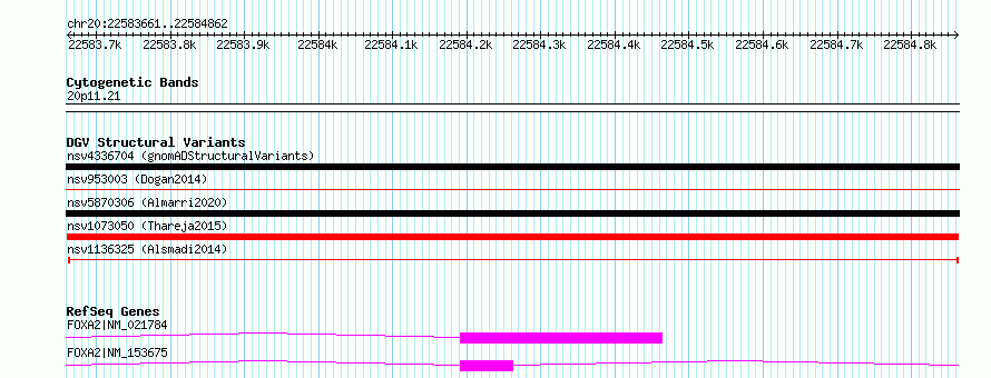Variant DetailsVariant: nsv1073050| Internal ID | 19317082 | | Landmark | | | Location Information | | | Cytoband | 20p11.21 | | Allele length | | Assembly | Allele length | | hg38 | 1202 | | hg19 | 1202 |