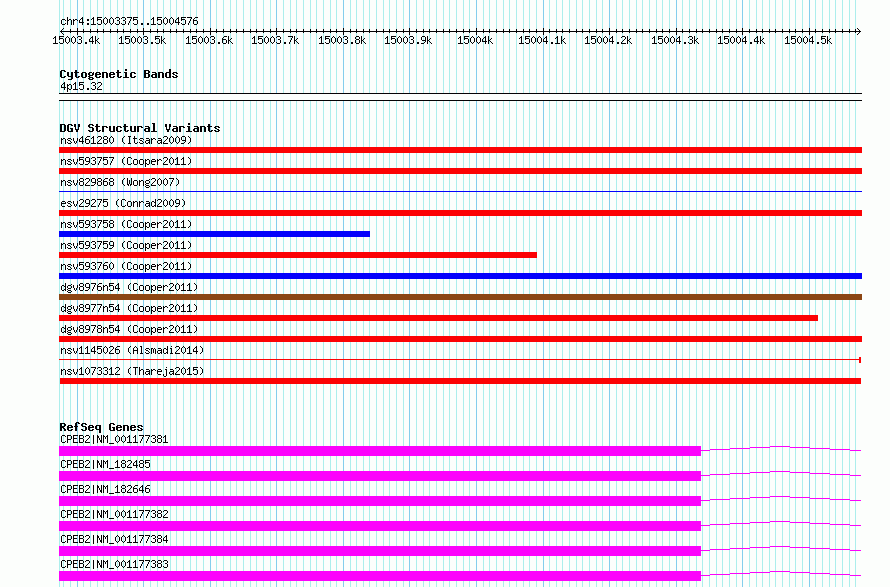 Variant DetailsVariant: nsv1073312| Internal ID | 19320690 | | Landmark | | | Location Information | | | Cytoband | 4p15.33 | | Allele length | | Assembly | Allele length | | hg38 | 1202 | | hg19 | 1202 |