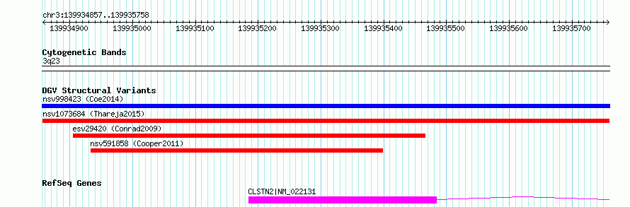 | Variant Type | CNV deletion | Copy Number | | Allele State | | Allele Origin | | Probe Count | | Validation Flag | | Merged Status | M | Merged Variants | | Supporting Variants | nssv3771835 | Samples | KWP1 | Known Genes | CLSTN2 | Method | Sequencing | Analysis | HugeSeq | Platform | Illumina HiSeq 2000 | Comments | | Reference | Thareja_et_al_2015 | Pubmed ID | 25765185 | Accession Number(s) | nsv1073684