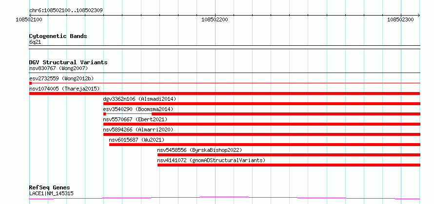 Variant DetailsVariant: nsv1074005| Internal ID | 19324358 | | Landmark | | | Location Information | | | Cytoband | 6q21 | | Allele length | | Assembly | Allele length | | hg38 | 210 | | hg19 | 210 |