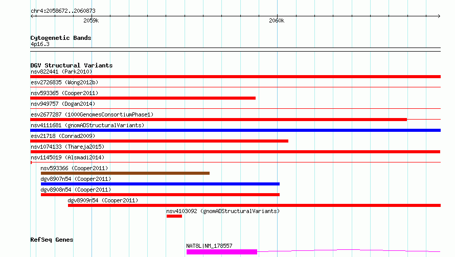 | | Variant Type | CNV deletion | | Copy Number | | | Allele State | | | Allele Origin | | | Probe Count | | | Validation Flag | | | Merged Status | M | | Merged Variants | | | Supporting Variants | nssv3771275 | | Samples | KWP1 | | Known Genes | NAT8L | | Method | Sequencing | | Analysis | HugeSeq | | Platform | Illumina HiSeq 2000 | | Comments | | | Reference | Thareja_et_al_2015 | | Pubmed ID | 25765185 | | Accession Number(s) | nsv1074133