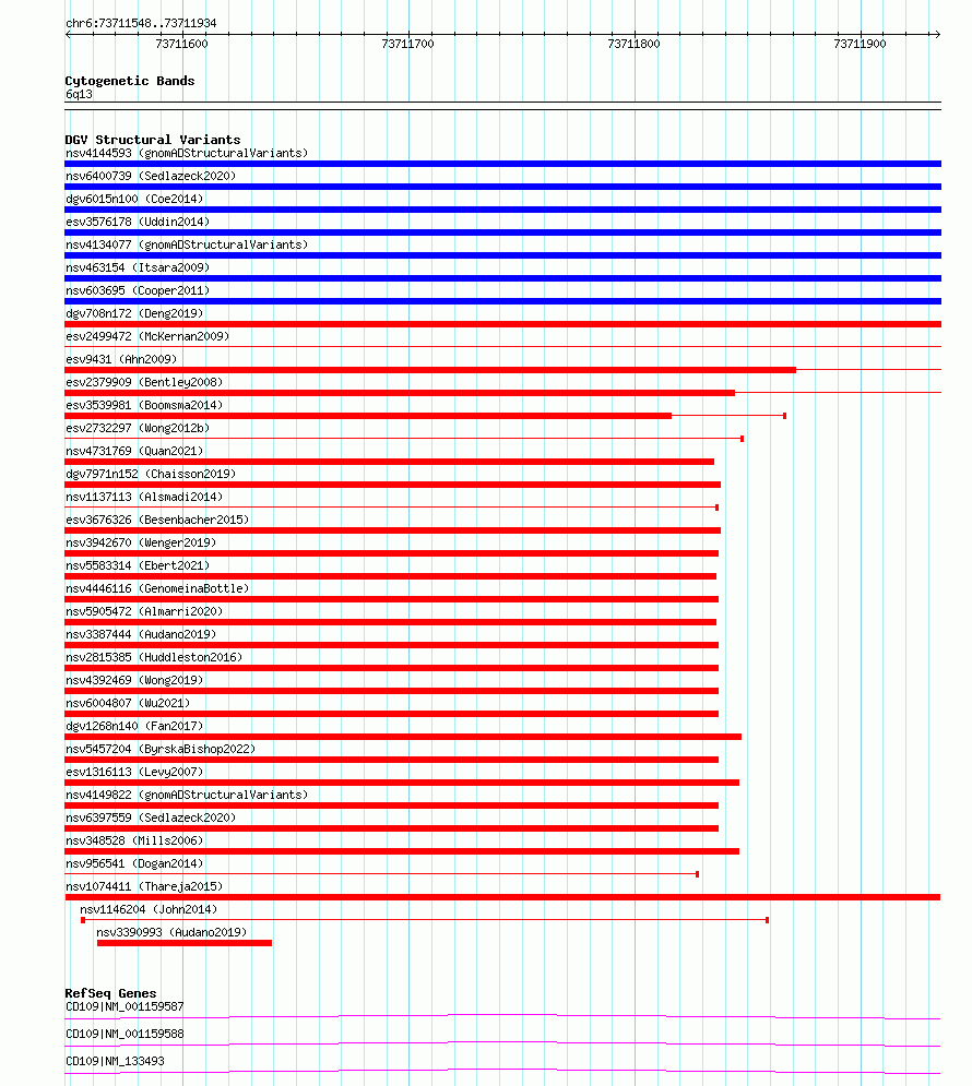 Variant DetailsVariant: nsv1074411| Internal ID | 19319509 | | Landmark | | | Location Information | | | Cytoband | 6q13 | | Allele length | | Assembly | Allele length | | hg38 | 387 | | hg19 | 387 |