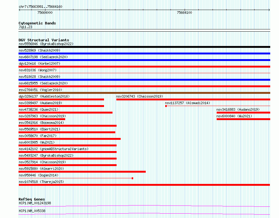Variant DetailsVariant: nsv1074518| Internal ID | 19321112 | | Landmark | | | Location Information | | | Cytoband | 7q11.23 | | Allele length | | Assembly | Allele length | | hg38 | 180 | | hg19 | 180 |