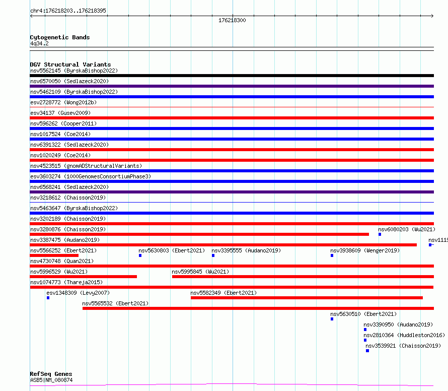 Variant DetailsVariant: nsv1074773| Internal ID | 19324938 | | Landmark | | | Location Information | | | Cytoband | 4q34.2 | | Allele length | | Assembly | Allele length | | hg38 | 193 | | hg19 | 193 |