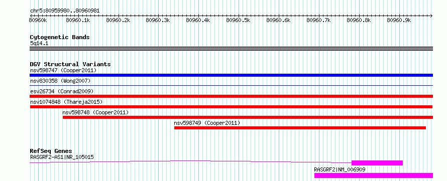 | Variant Type | CNV deletion | Copy Number | | Allele State | | Allele Origin | | Probe Count | | Validation Flag | | Merged Status | M | Merged Variants | | Supporting Variants | nssv3769762 | Samples | KWP1 | Known Genes | LOC102524628, RASGRF2 | Method | Sequencing | Analysis | HugeSeq | Platform | Illumina HiSeq 2000 | Comments | | Reference | Thareja_et_al_2015 | Pubmed ID | 25765185 | Accession Number(s) | nsv1074848