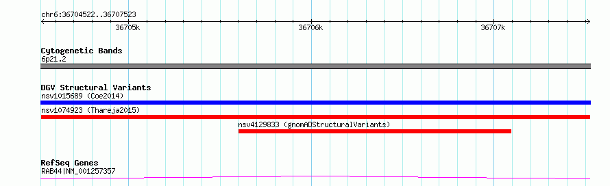 Variant DetailsVariant: nsv1074923| Internal ID | 18971970 | | Landmark | | | Location Information | | | Cytoband | 6p21.2 | | Allele length | | Assembly | Allele length | | hg38 | 3002 | | hg19 | 3002 |