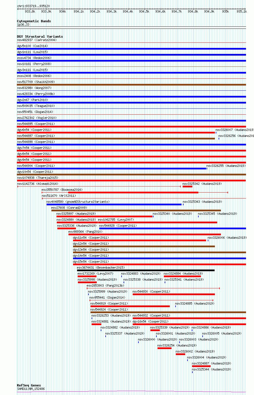 | Variant Type | CNV deletion | Copy Number | | Allele State | | Allele Origin | | Probe Count | | Validation Flag | | Merged Status | M | Merged Variants | | Supporting Variants | nssv3767822 | Samples | KWP1 | Known Genes | SAMD11 | Method | Sequencing | Analysis | HugeSeq | Platform | Illumina HiSeq 2000 | Comments | | Reference | Thareja_et_al_2015 | Pubmed ID | 25765185 | Accession Number(s) | nsv1074938