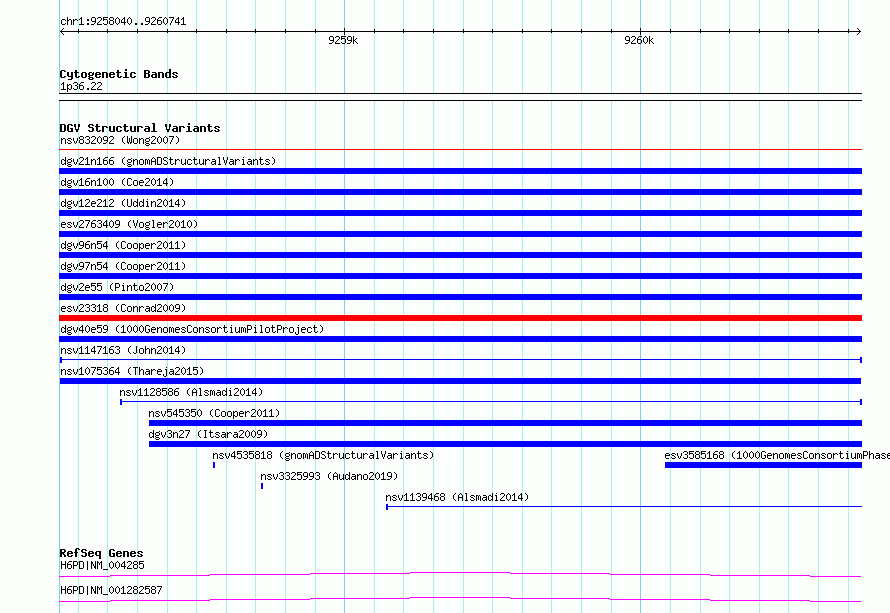 | Variant Type | CNV duplication | Copy Number | | Allele State | | Allele Origin | | Probe Count | | Validation Flag | | Merged Status | M | Merged Variants | | Supporting Variants | nssv3770936 | Samples | KWP1 | Known Genes | H6PD | Method | Sequencing | Analysis | HugeSeq | Platform | Illumina HiSeq 2000 | Comments | | Reference | Thareja_et_al_2015 | Pubmed ID | 25765185 | Accession Number(s) | nsv1075364