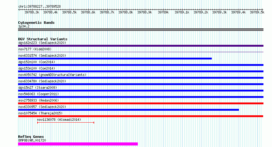 Variant DetailsVariant: nsv1075454| Internal ID | 19326748 | | Landmark | | | Location Information | | | Cytoband | 1p34.2 | | Allele length | | Assembly | Allele length | | hg38 | 1302 | | hg19 | 1302 |