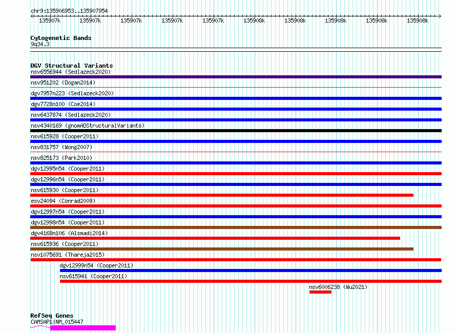 Variant DetailsVariant: nsv1075691| Internal ID | 19325393 | | Landmark | | | Location Information | | | Cytoband | 9q34.3 | | Allele length | | Assembly | Allele length | | hg38 | 1002 | | hg19 | 1002 |