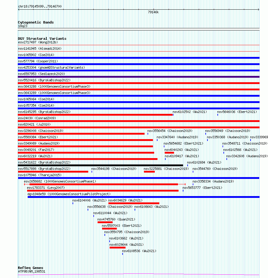 Variant DetailsVariant: nsv1075946| Internal ID | 19316014 | | Landmark | | | Location Information | | | Cytoband | 18q23 | | Allele length | | Assembly | Allele length | | hg38 | 1602 | | hg19 | 1602 |