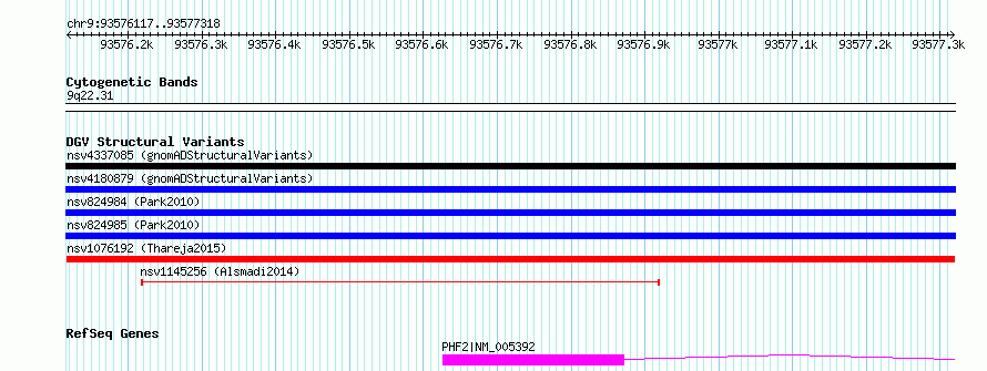 Variant DetailsVariant: nsv1076192| Internal ID | 19321568 | | Landmark | | | Location Information | | | Cytoband | 9q22.31 | | Allele length | | Assembly | Allele length | | hg38 | 1202 | | hg19 | 1202 |