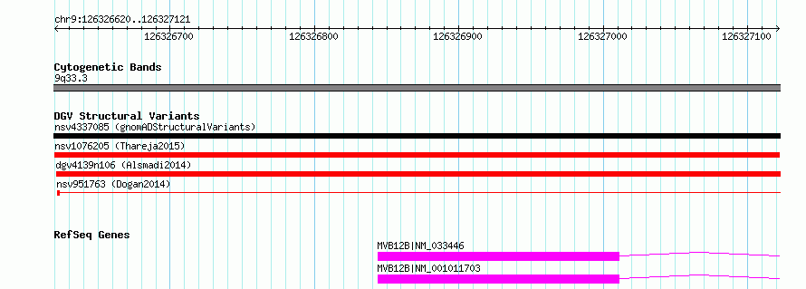 Variant DetailsVariant: nsv1076205| Internal ID | 18974572 | | Landmark | | | Location Information | | | Cytoband | 9q33.3 | | Allele length | | Assembly | Allele length | | hg38 | 502 | | hg19 | 502 |