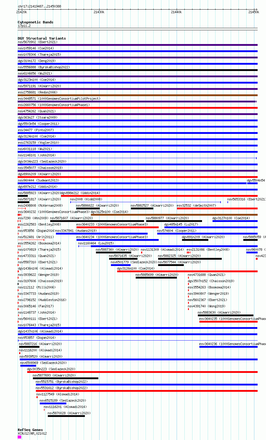 Variant DetailsVariant: nsv1076443| Internal ID | 19322849 | | Landmark | | | Location Information | | | Cytoband | 17p11.2 | | Allele length | | Assembly | Allele length | | hg38 | 30902 | | hg19 | 30902 |