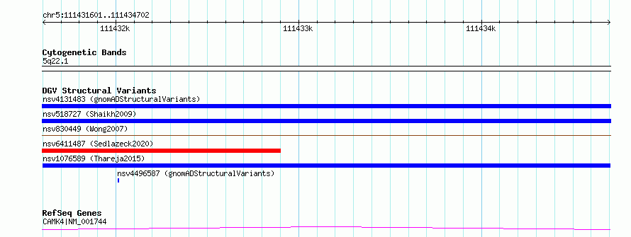 Variant DetailsVariant: nsv1076589| Internal ID | 19317184 | | Landmark | | | Location Information | | | Cytoband | 5q22.1 | | Allele length | | Assembly | Allele length | | hg38 | 3102 | | hg19 | 3102 |